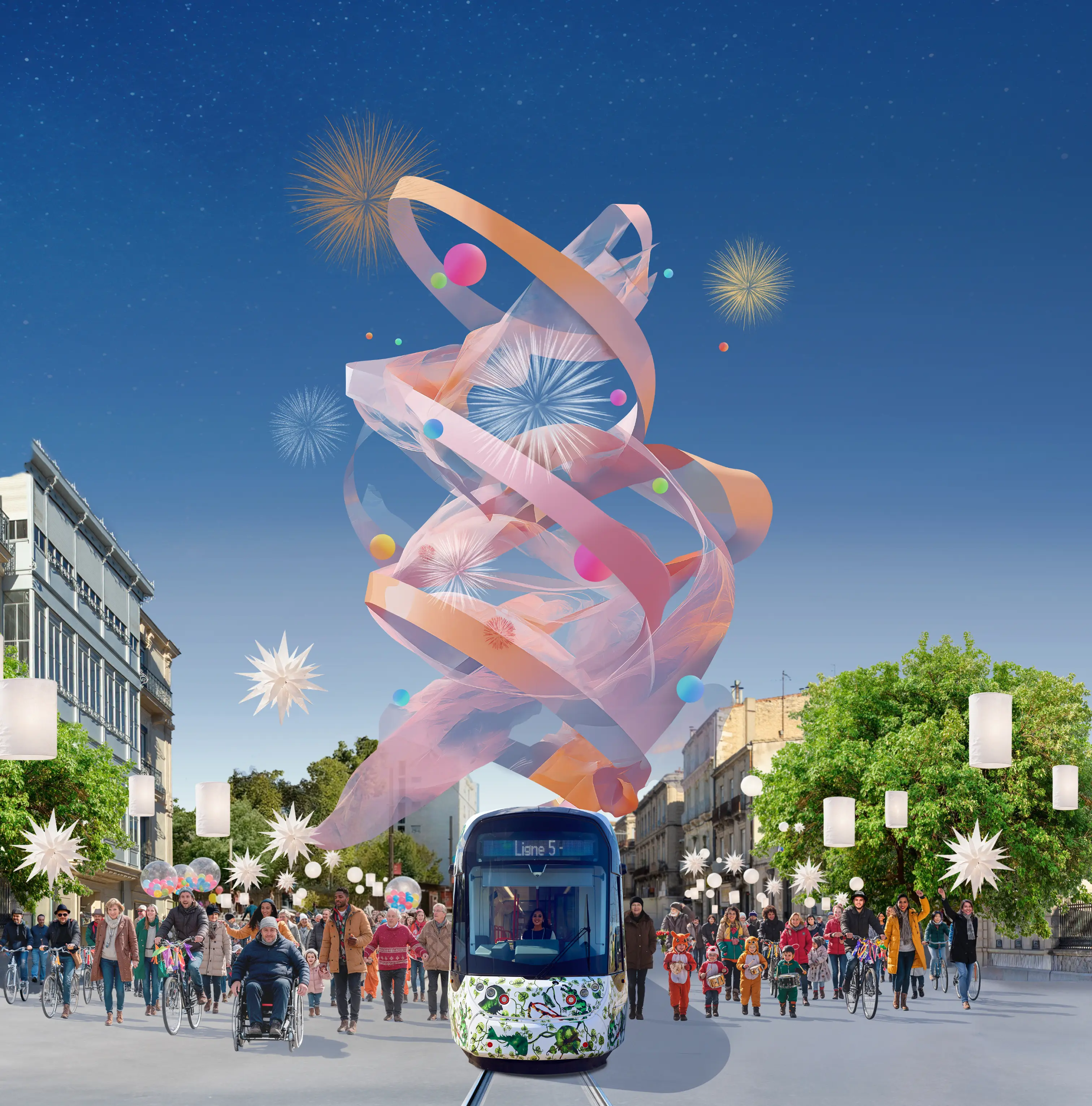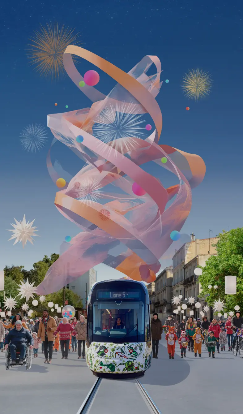 La journée se vit comme une traversée de la ville et une fête collective : le tramway devient un fil d’art et les rues, parcs et places se transforment en scènes à ciel ouvert, rythmées par une programmation culturelle, artistique et participative.